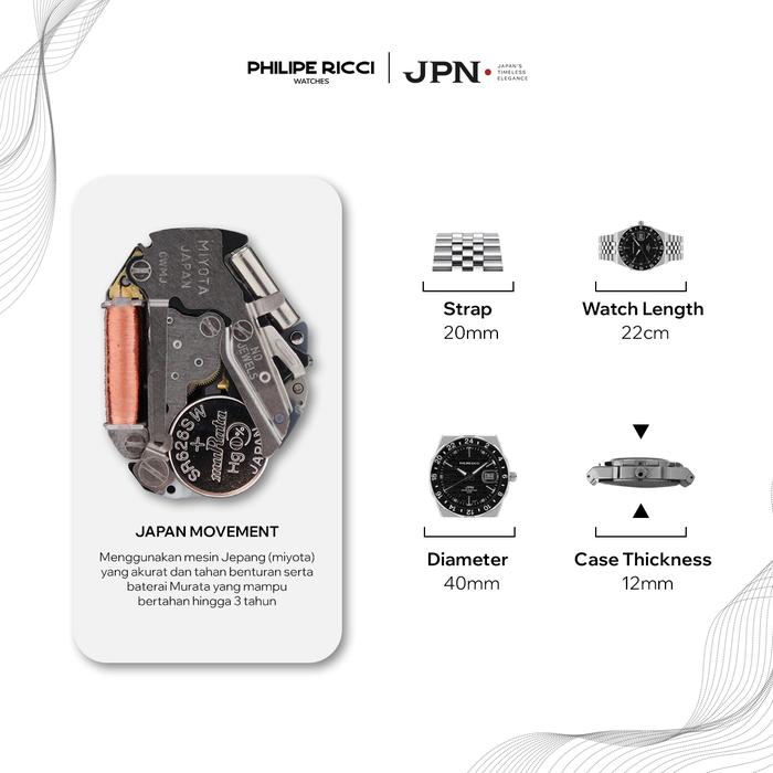 PHILIPE RICCI JPN JAM TANGAN PRIA RANTAI KEREN ori 100 PERSEN TERBARU ANTI AIR STYLISH 6491 FREE BOX - GREEN DIAL