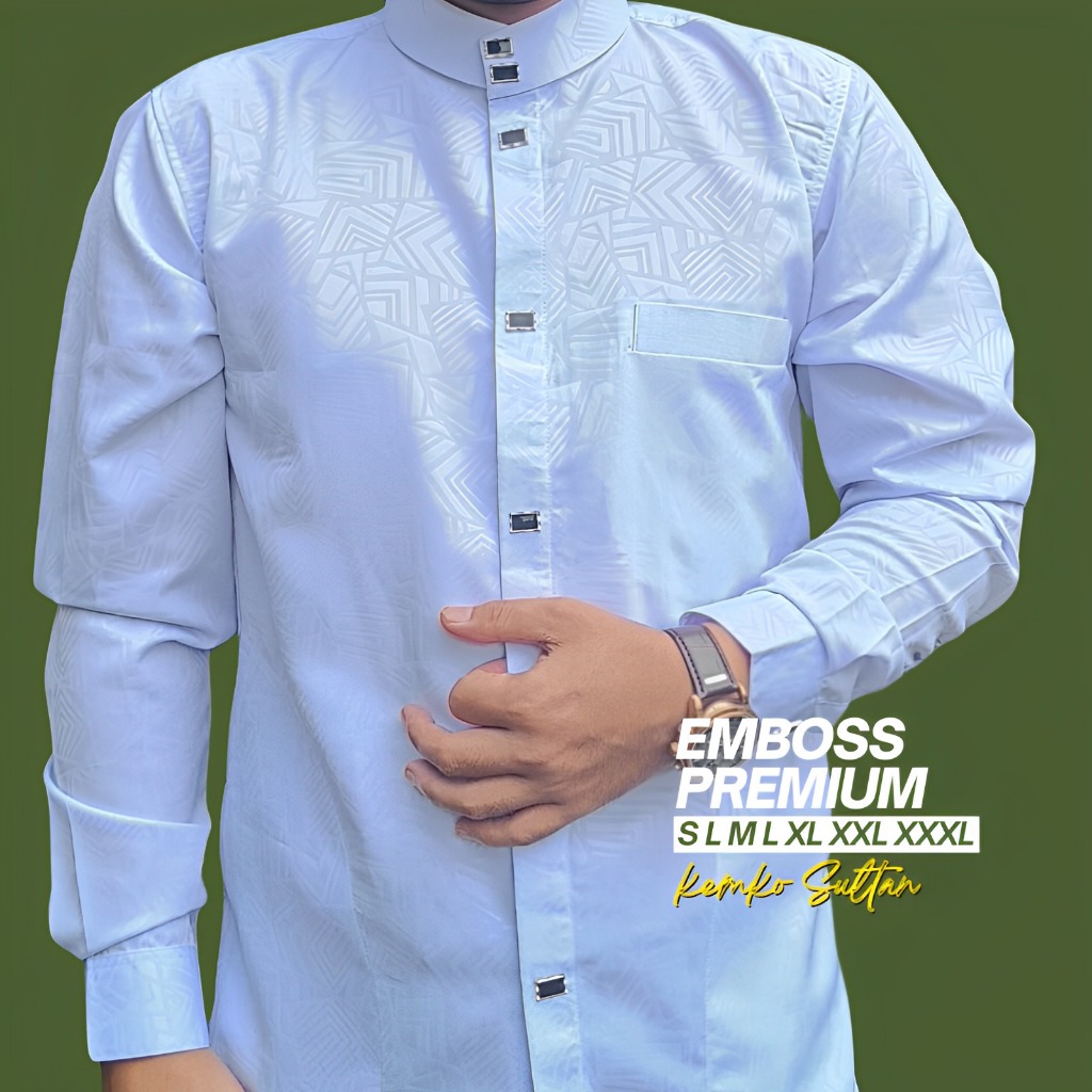 (PROMO) BAJU MUSLIM KEMEJA KOKO KEMKO PRIA SULTAN KASUAL DEWASA HITAM LENGAN PANJANG KURTA EMBOS MOTIF