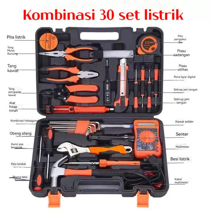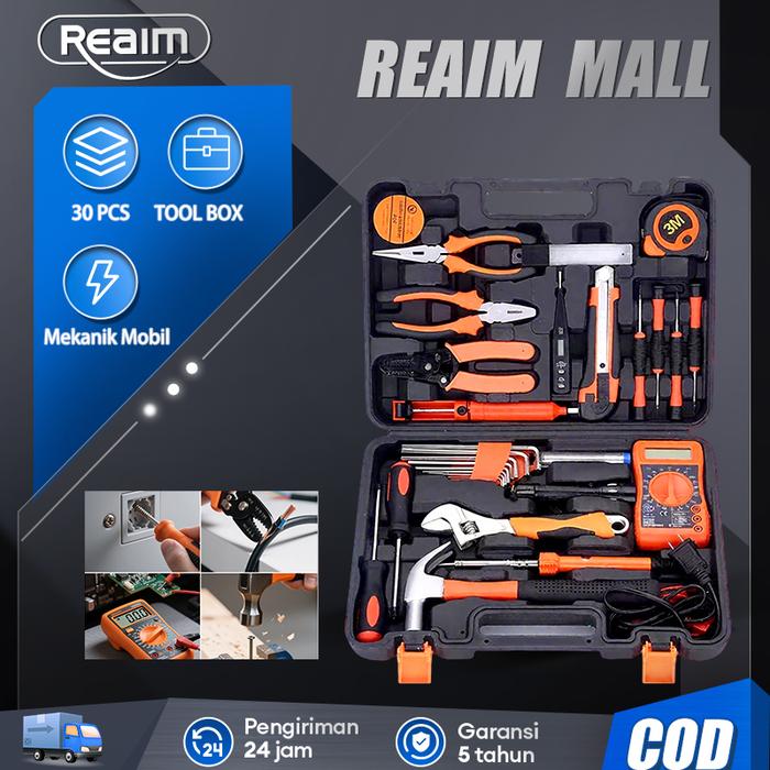 REAIM 30PCS TOOLS SET BOX KUNCI SHOCK SET KOTAK PERKAKAS MEKANIK RUMAH PERKAKAS LENGKAP PALU TANG OBENG KUNCI PAS CUTTER