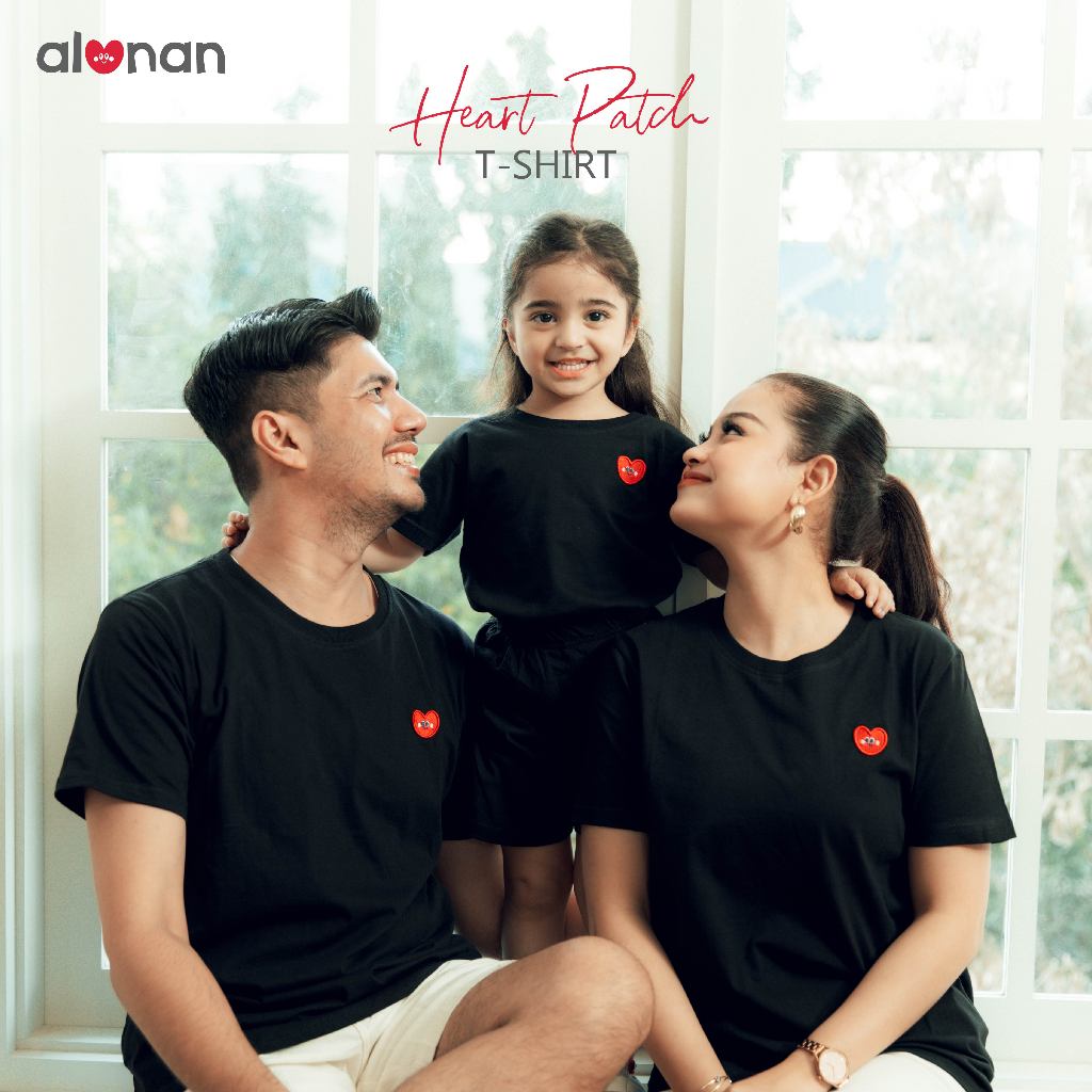 ALUNAN Baju Kaos Couple Family / Baju Pasangan Keluarga Ayah Ibu Anak – Heart Patch T Shirt