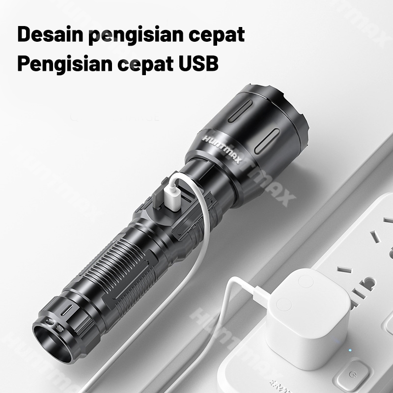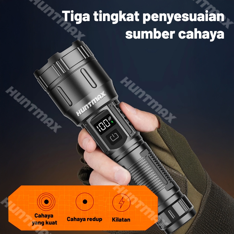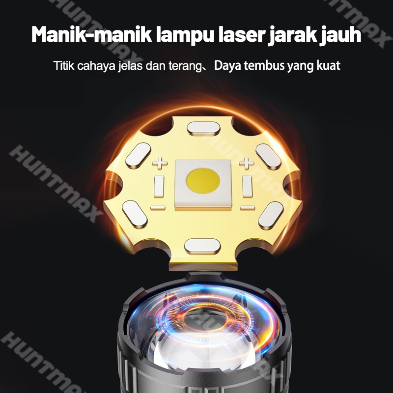 HUNTMAX HM-911 Flashlight Senter LED Super Terang Zoom Teleskopik 3000mAh 1800lumen 100w