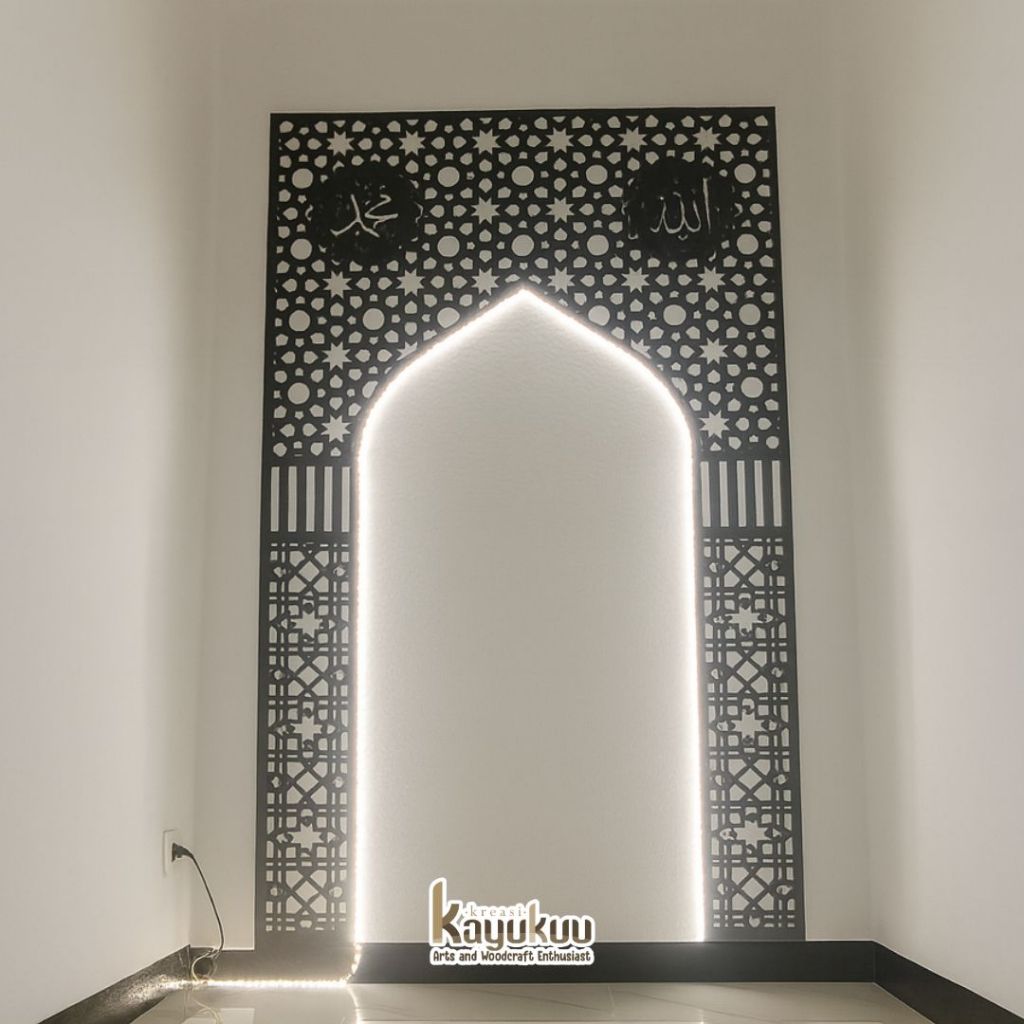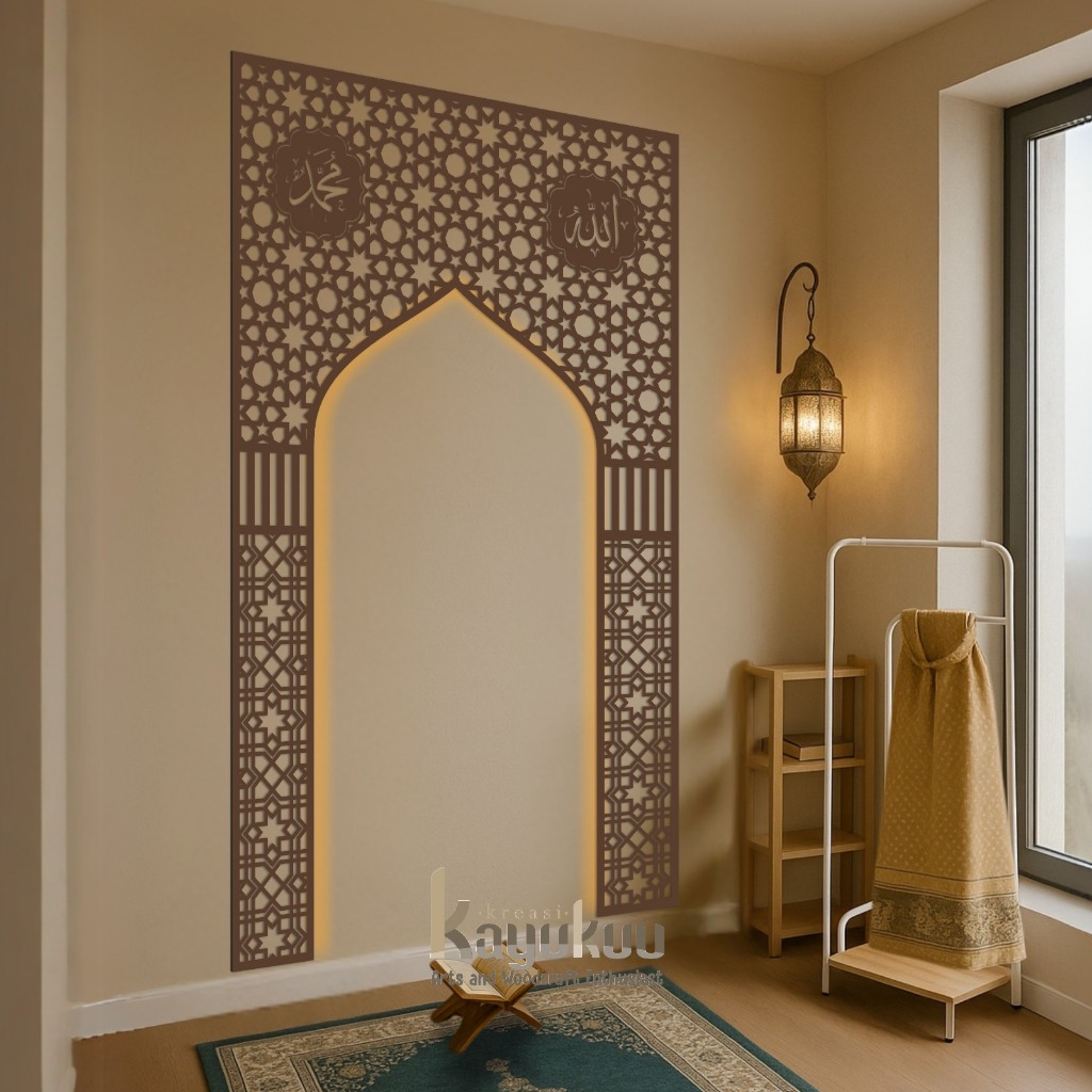 Kreasikayukuu Mihrab Mushola 2 Ornamen Allah Muhammad Hiasan Dinding Mushola Walldecor Plywood 3mm