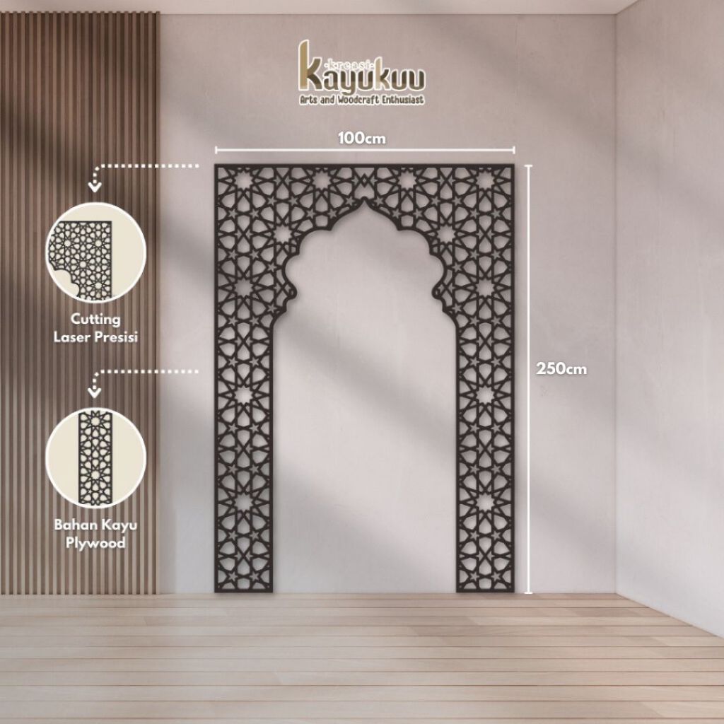 Kreasikayukuu Mihrab Mushola + LED Hiasan Dinding Mushola Islami Bahan Kayu Plywood 3mm