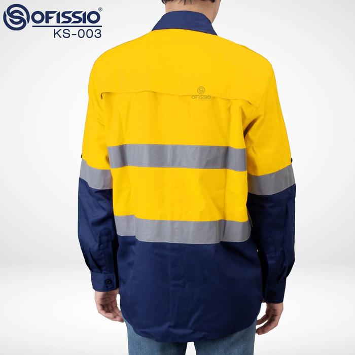 KEMEJA SERAGAM SAFETY SCOTHLIGHT OFISSIO KS-003- BISA BORDIR MIN 8PC BAJU KERJA NAVY KOMBINASI KUNING BIRU WEARPACK PANJ