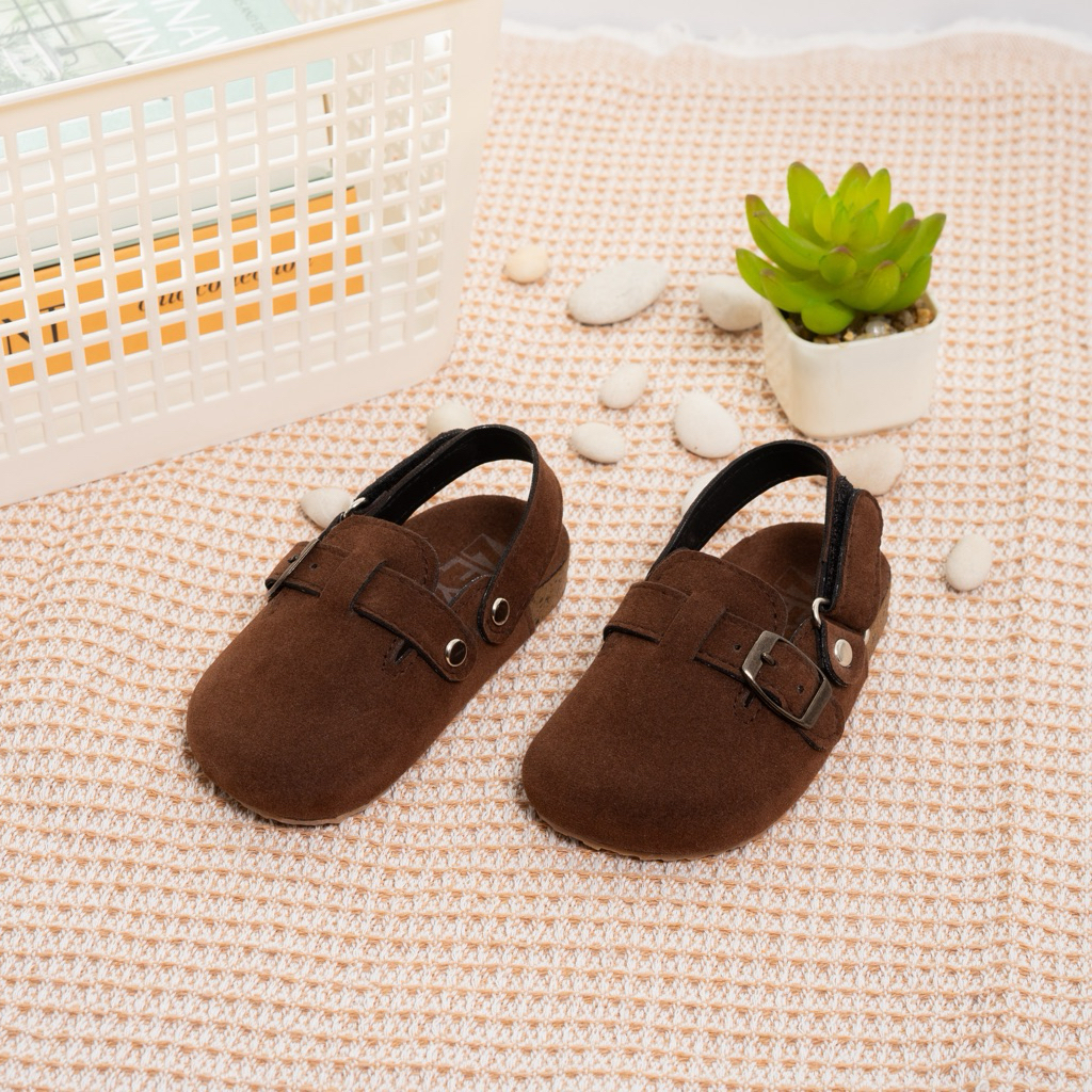 Zeya Sepatu Sandal Anak Bustong Clogs Terbaru Suede Usia 1 2 Sampai 7 Tahun Best Seller BP Coklat