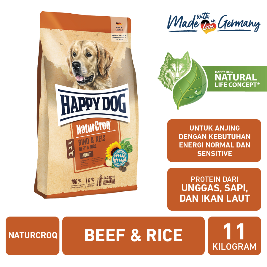 Happy Dog Makanan Anjing Dewasa Naturcroq Beef & Rice 11kg
