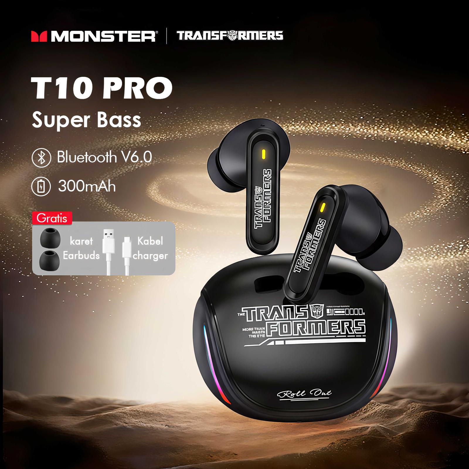 Monster x Transformers T10 Pro TWS Gaming Low Delay Bluetooth V6.0 Dual Mode Gaming Music Earphone