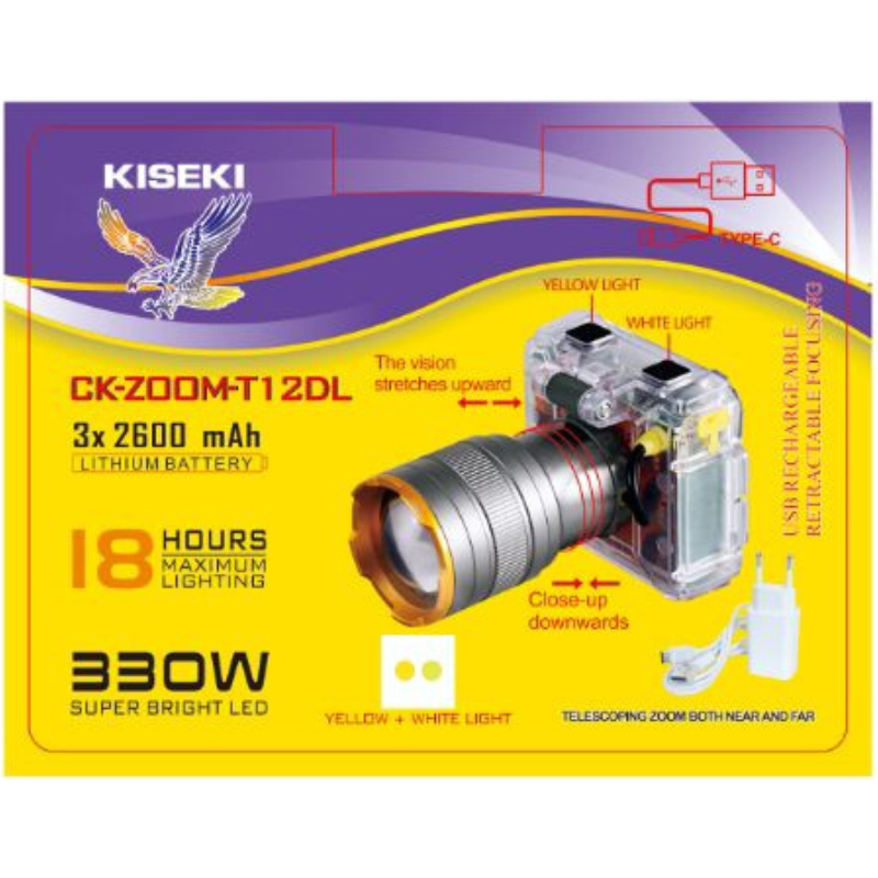 Kiseki Senter Kepala Zoom Body Transparan Dual Cahaya New Edition CK-ZOOM T12DL & CK-ZOOM T13DL