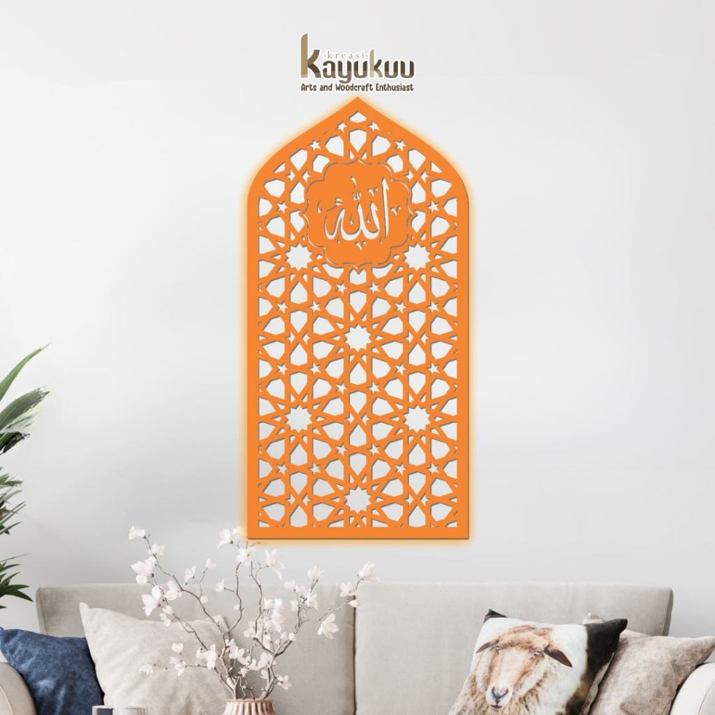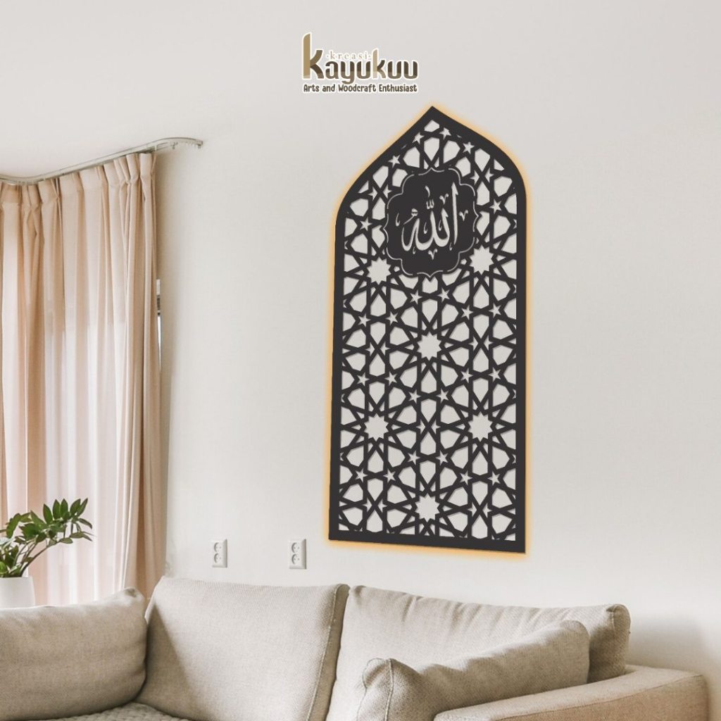 Kreasikayukuu Mihrab Mushola Kubah Mini Hiasan Dinding Mushola Estetik Bahan Kayu Plywood 3mm