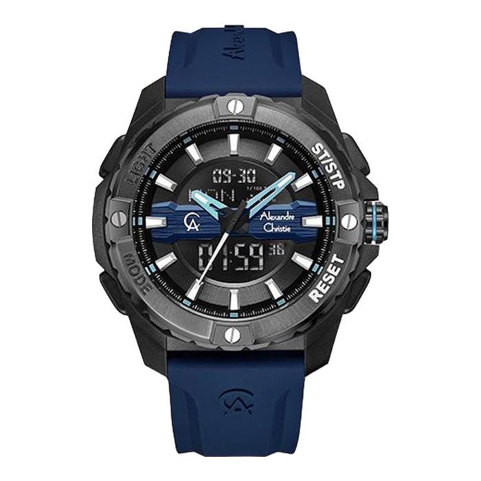 JAM TANGAN PRIA ALEXANDRE CHRISTIE DIGI AC 9404 MH REPBABU MEN DIGITAL ANALOG DIAL BLUE RUBBER STRAP