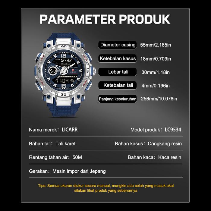LICARR JAM TANGAN PRIA OLAHRAGA ANALOG-DIGITAL KASUAL ANTI AIR KUARSA JAM TANGAN COWOK ori MEREK STOPWATCH ALARM KALENDE