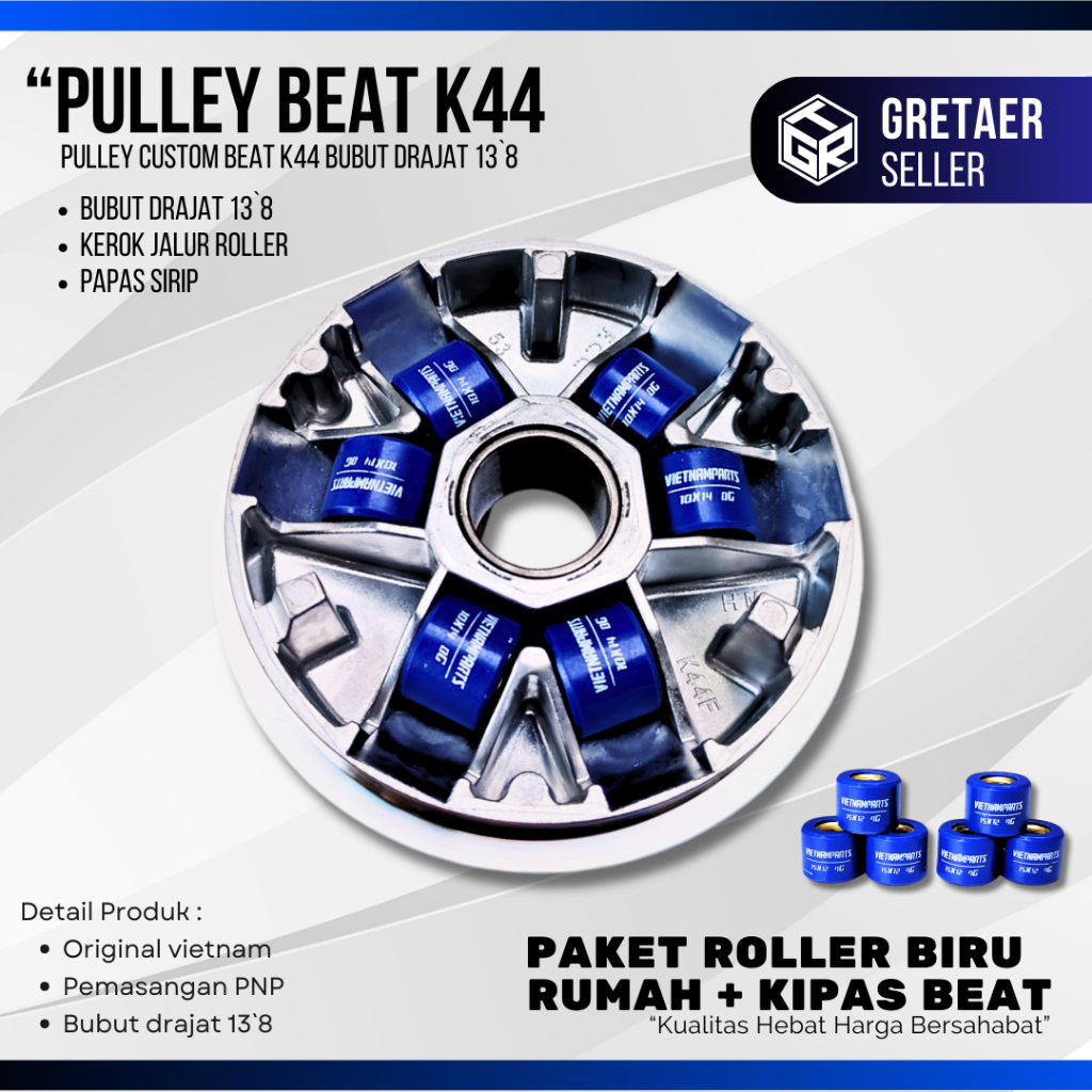 PULLEY BEAT FI K44/K25 BEAT ESP RUMAH ROLLER BEAT BUBUT 13`8 DRAJAT RUMAH + KIPAS PULLEY