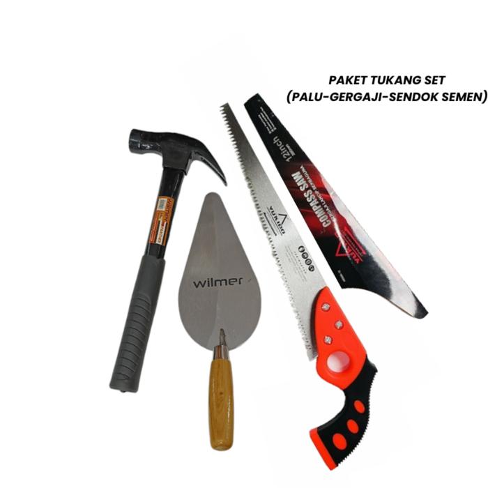 PAKET LENGKAP 4 BARANG YUKIDO PALU 8 OZ, GERAJI 12 IN, METERAN 3M, SENDOK SEMEN 7 IN - GERGAJI + PALU + METERAN + SENDOK