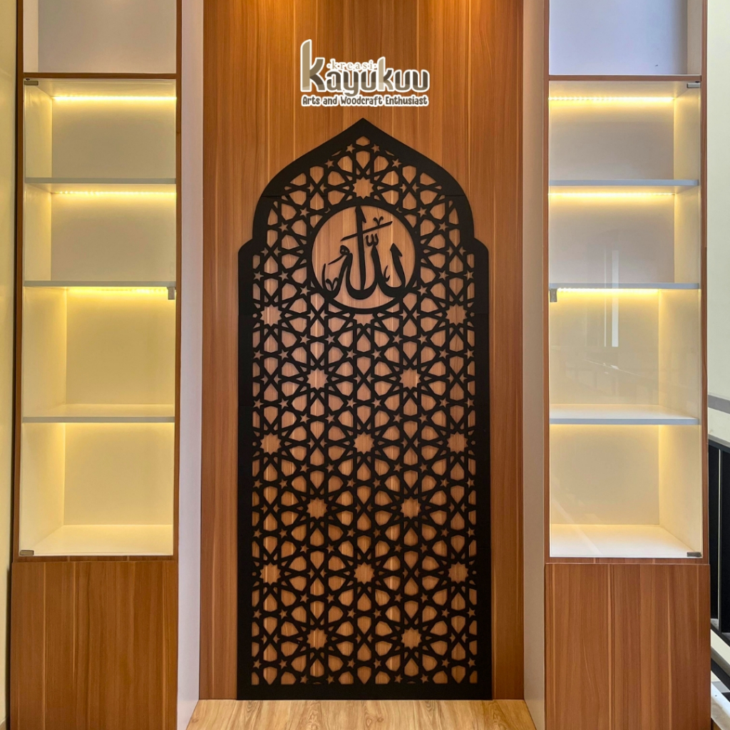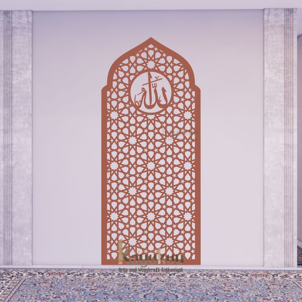 Kreasikayukuu Mihrab Mushola Kubah Allah Hiasan Dinsing Mushola Bahan Cutting Kayu Plywood 3mm