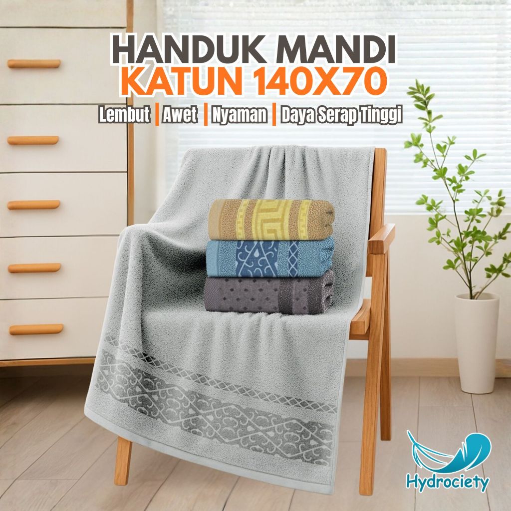 Hydrociety - Handuk Mandi Dewasa Katun Tebal 70x140cm Motif Bordir Daya Serap Tinggi - MJ-1E/1F/1G