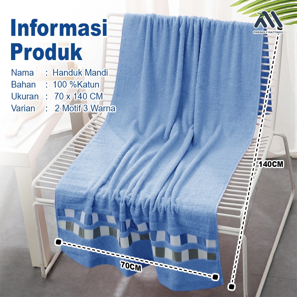 Handuk Mandi Dewasa 100% Cotton Premium Motif Bordir 70x140Cm Nyerap Air MJ-2A/B/C