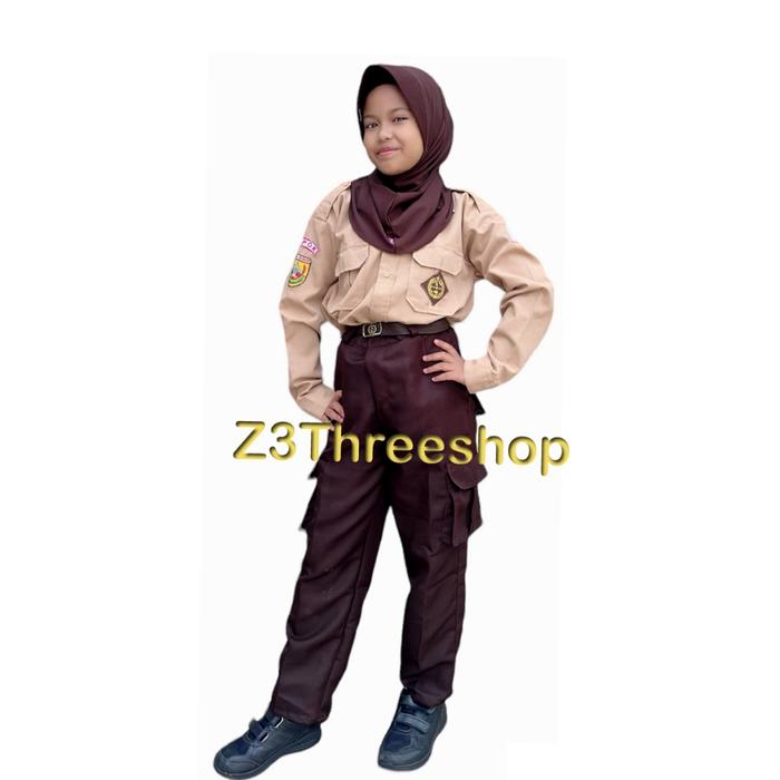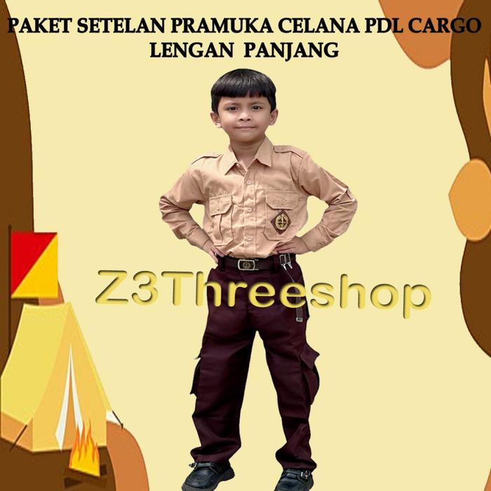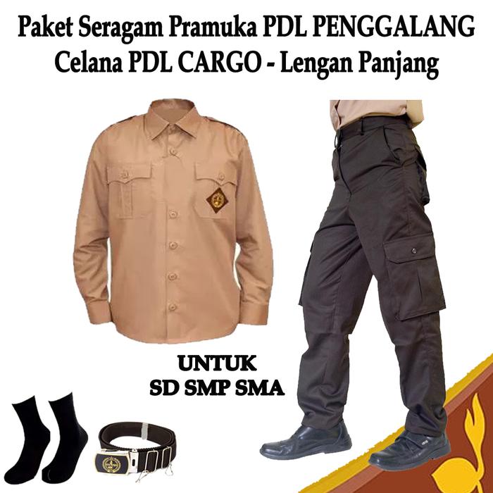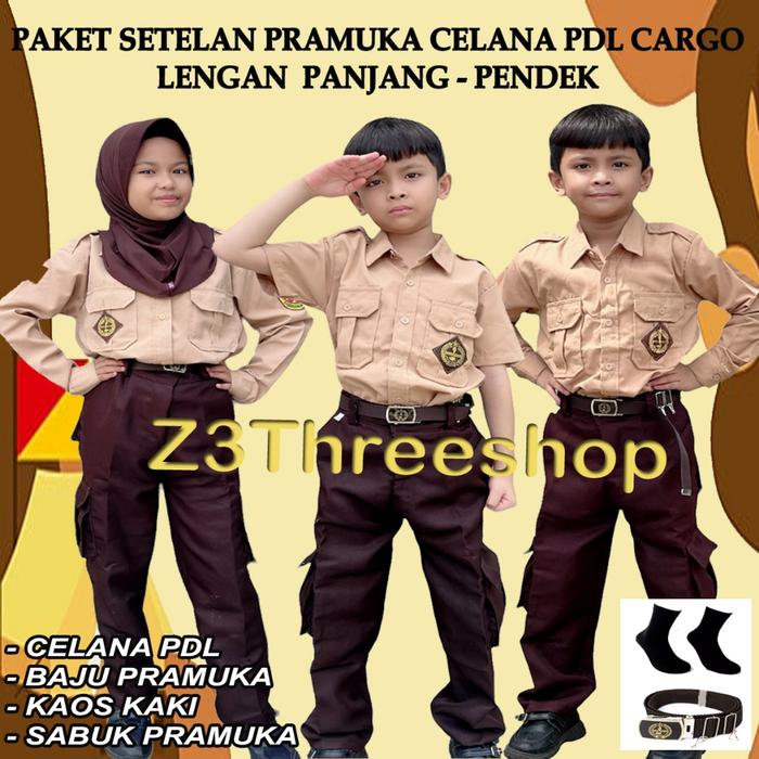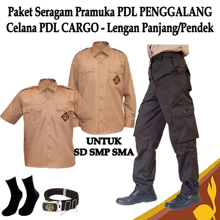 PAKET SETELAN SERAGAM ANAK SEKOLAH PRAMUKA PENGGALANG LENGAN PANJANG/PENDEK CELANA PDL 6 SAKU SD SMP SMA - BAJU PENDEK+C