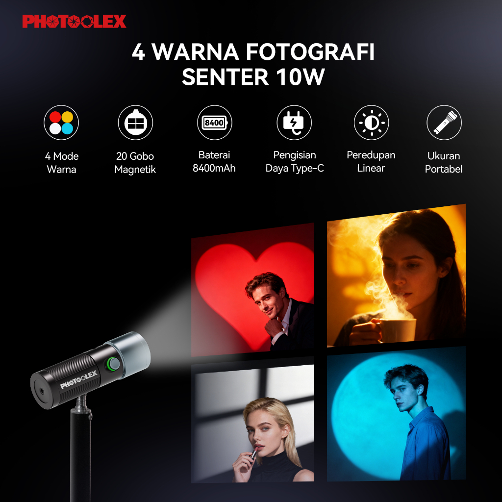 PHOTOOLEX Resmi Set Kombinasi Lampu Zoom Portabel Empat Warna Lampu Sorot Fotografi Senter 10/20pcs
