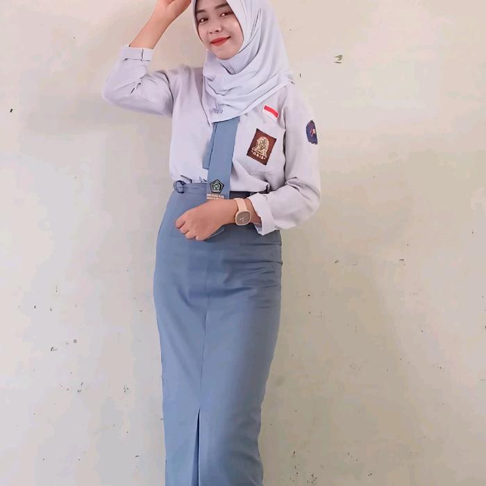 SETELAN BAJU SEKOLAH SMA PEREMPUAN // PUTIH - ABU // BAJU PANJANG OBLONG & ROK SPAN FLOI DEPAN 1 - BAJU & ROK (SMA) PUT