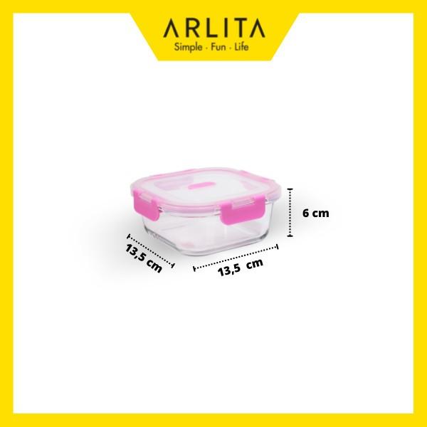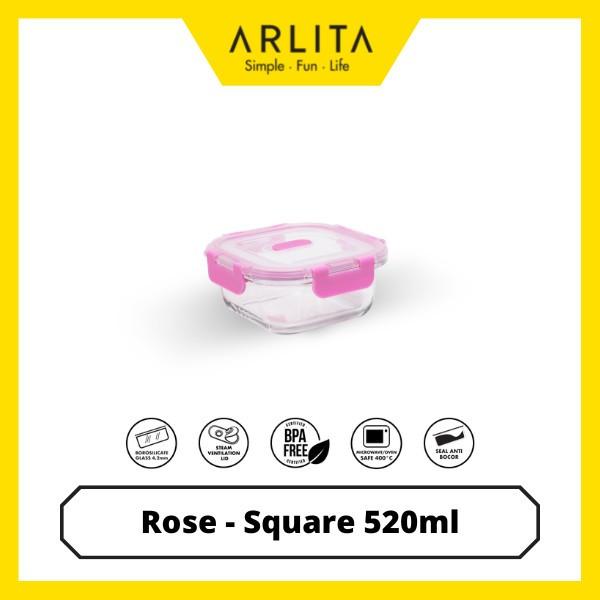 ARLITA ROSE SET - SQUARE- GLASS CONTAINER SET ISI 3 Kotak Makanan