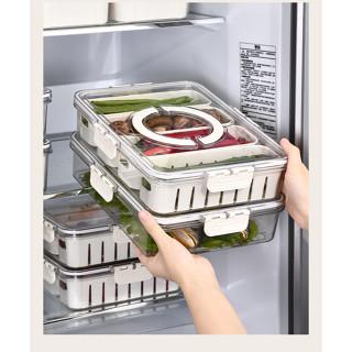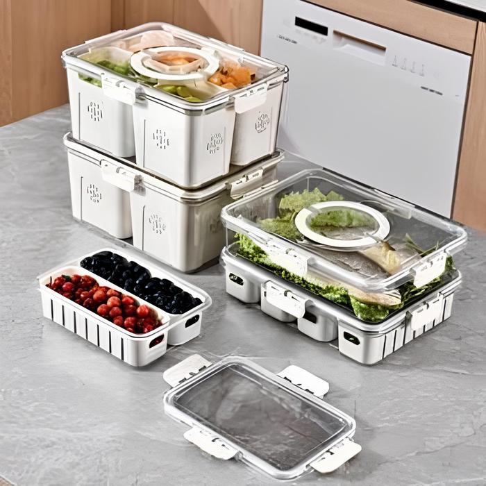 HELU Kotak Penyimpanan Makanan Kulkas Dengan Tutup Kedap Udara Dan Penyimpanan Tirisan Plastik