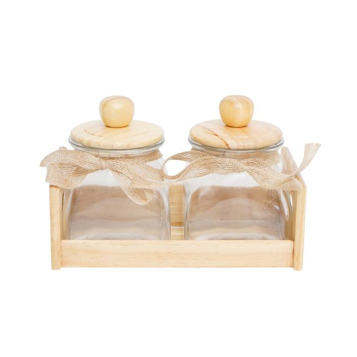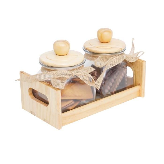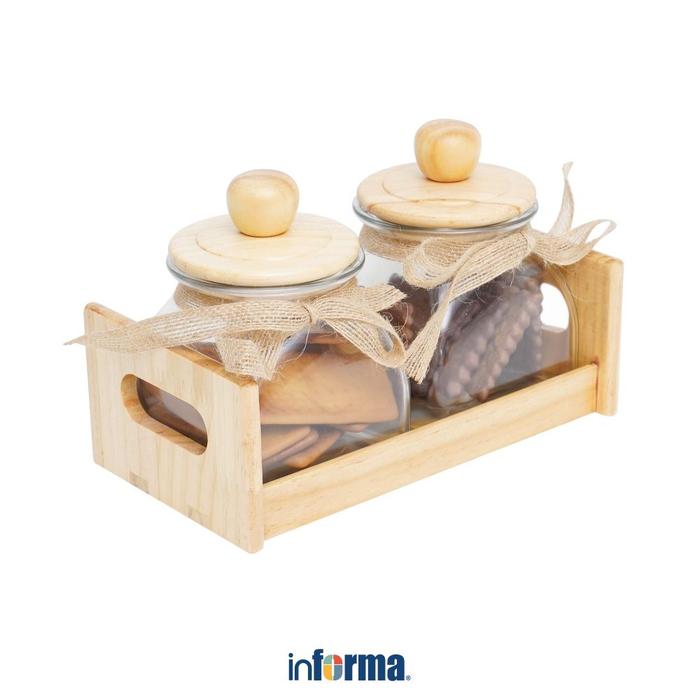 Informa 650 ml Set 2 Pcs Coco Stoples Kaca Dengan Nampan Toples Kue Wadah Makanan Tempat Bumbu