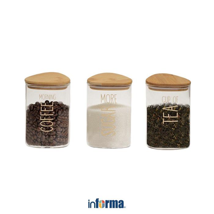 Informa Set 3 Pcs Kanaya Stoples Kaca Toples Kopi Toples Gula Teh Tempat Bumbu Dapur Wadah Kopi Gula