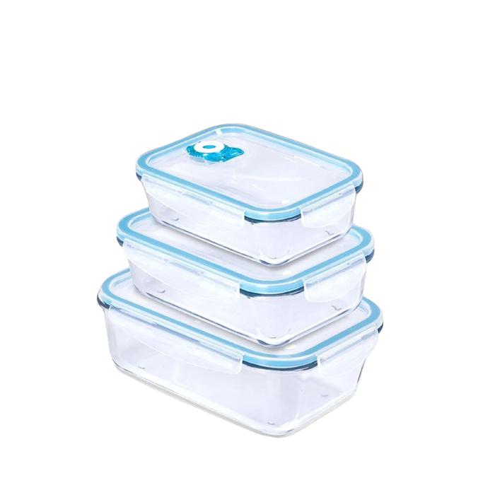 Rovega Tempat Penyimpanan Makanan Kaca Vakum Persegi 3 Pcs Set 330ML 550ML 700ML Plastik Food Grade