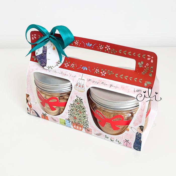 (BOX 2 JAR 400 ml NATAL ) kotak kue kering isi 2 toples tabung 400ml natal christmas (isi 10)