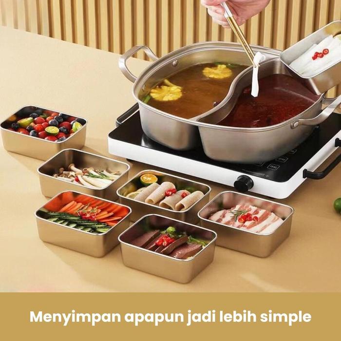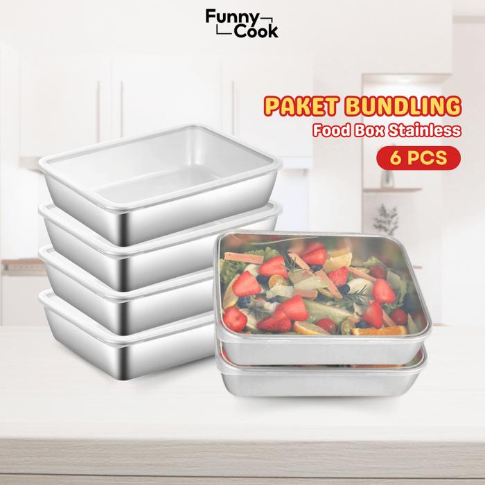 [RACUNNUUNA] FUNNYCOOK Food Box 6pcs Stainless Steel Tempat Menyimpan Makanan Food Container Wadah