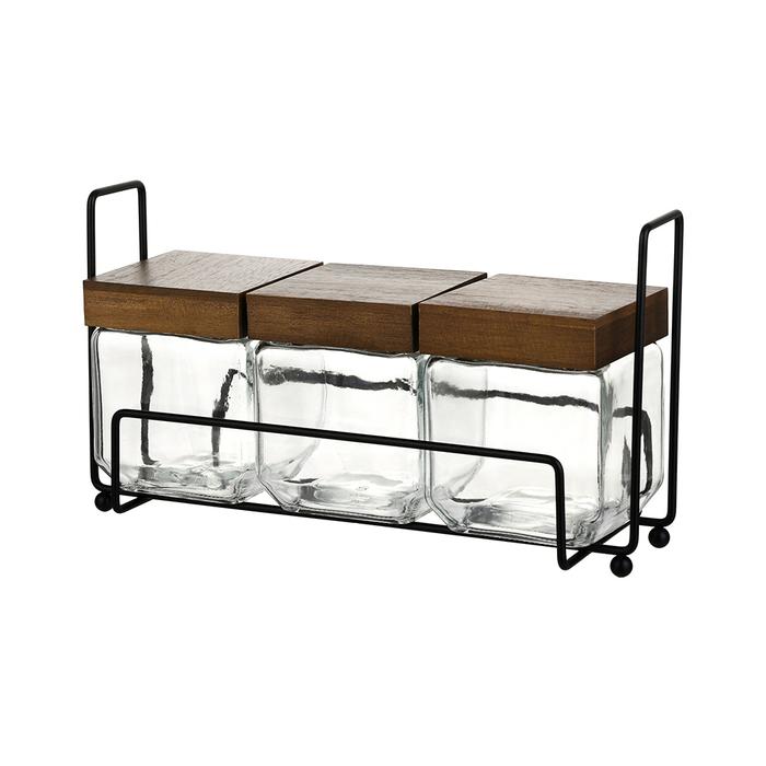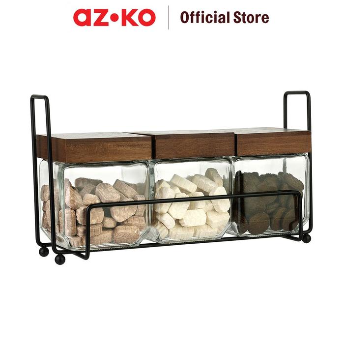 PICAS 500 ML SET 3 PCS PINNO STOPLES KACA DENGAN RAK
