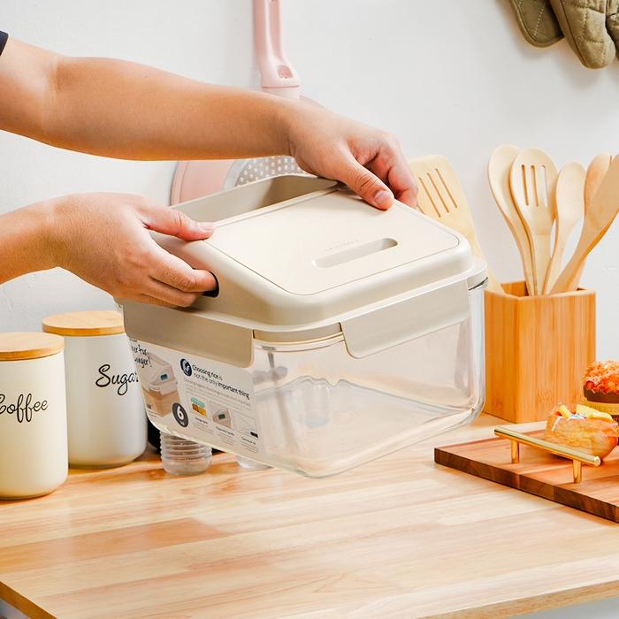 Informa Glasslock 6 ltr Tempat Beras - Krem Beige Wadah Beras Tempat Penyimpanan Makanan Toples