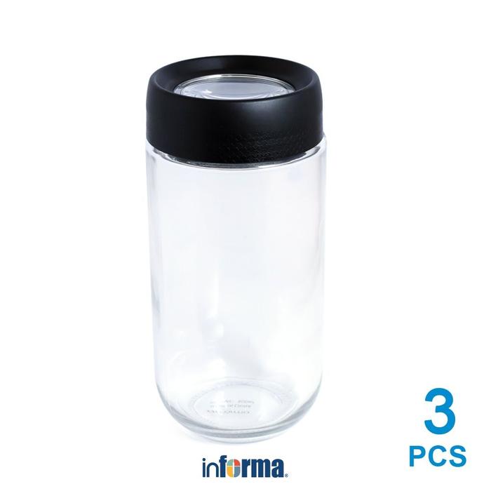 Informa Elemental Kitchen 800 ml Set 3 Pcs Serena Stoples Kaca - Hitam Toples Tempat Bumbu Wadah
