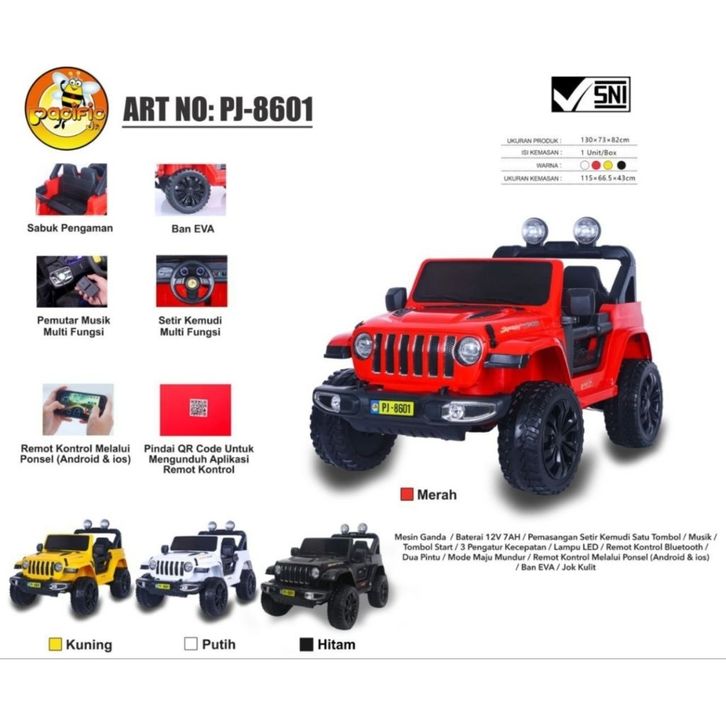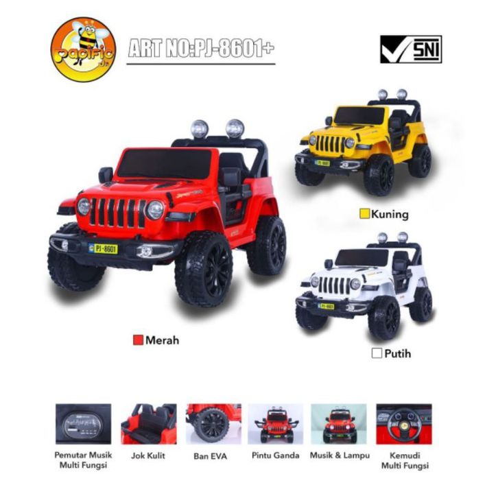 Mainan Mobil Aki Anak Pacific Jeep Wrangler PJ-8601+ Jumbo Size Ban Eva Jok Kulit
