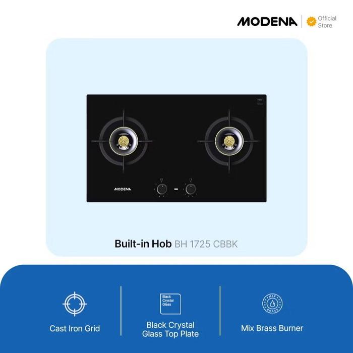 Murah MODENA Kompor Gas Tanam 70cm 2 Burner Full Brass - BH 1725 CBBK - Hitam Hemat