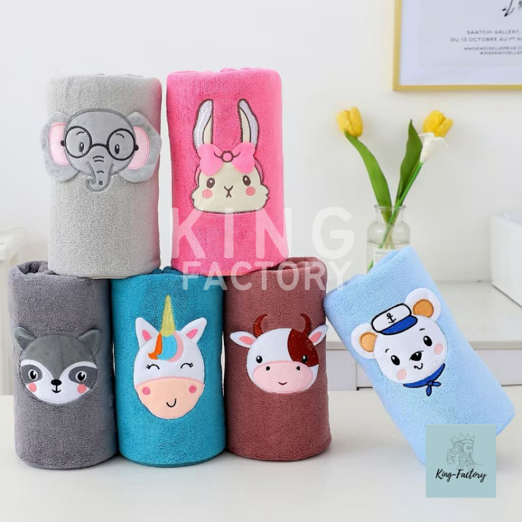 King-Factory Handuk Mandi Microfiber 70x140 Bayi Anak Motif Baby Keledai Ruby Daya Serap Tinggi