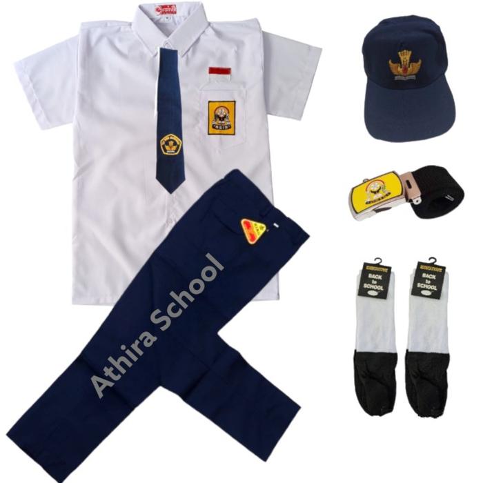 SERAGAM SEKOLAH SMP SUPER LENGKAP BAJU PENDEK CELANA PANJANG LAKI LAKI SETELAN FASHION - SET LENGKAP TOPI BIRU, 12 THN