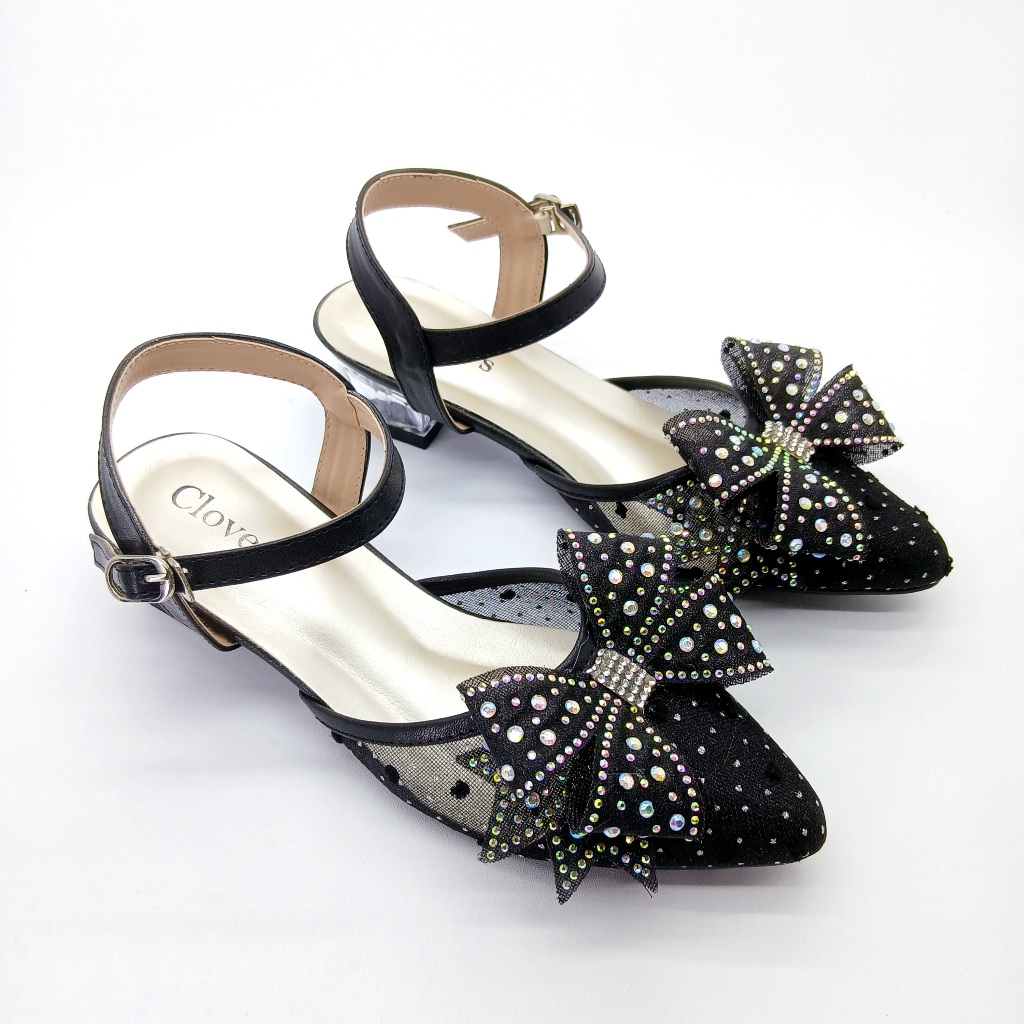 Clovers Store Sandal Anak Perempuan Sandal Brukat Wanita Sandal Pesta Pernikahan Hak Kaca 3 Cm