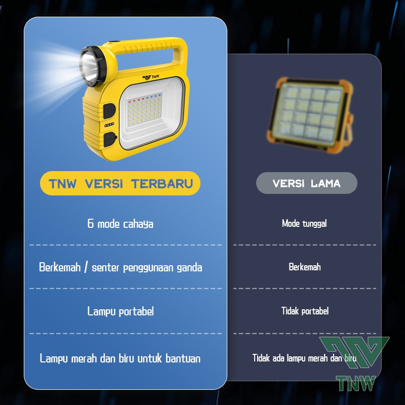 TNW OL6 Senter LED Super Terang Portabel Lampu Tenaga Surya Outside Solar Emergency Light 100W Multifungsi Power Bank 60