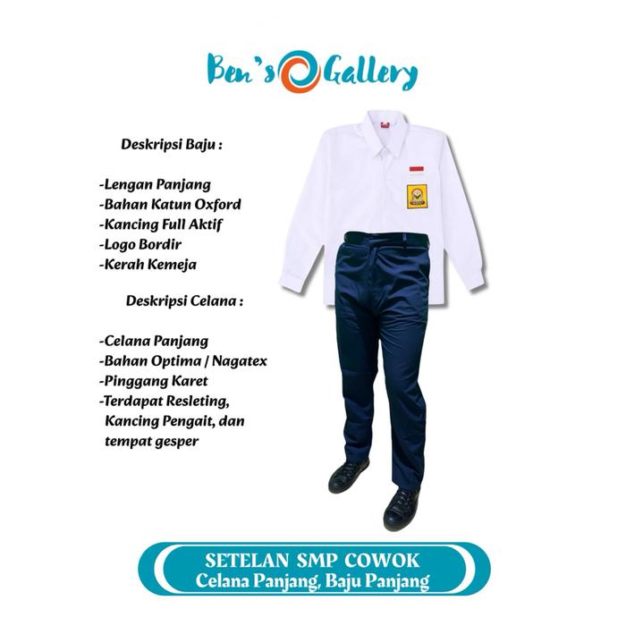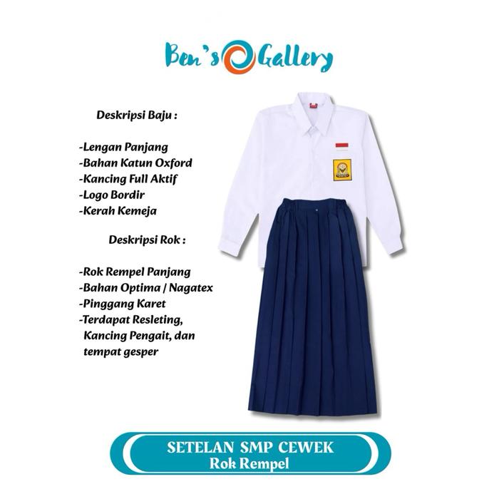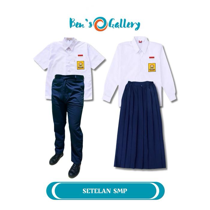 SETELAN SMP LAKI PEREMPUAN BAJU ATASAN KEMEJA PUTIH LENGAN PANJANG BAWAHAN ROK CELANA ROK REMPEL SPAN BELAH 2 WARNA BIRU