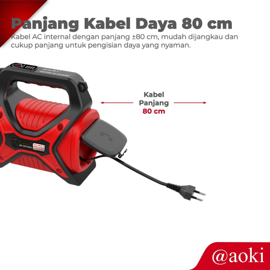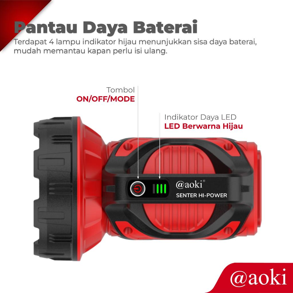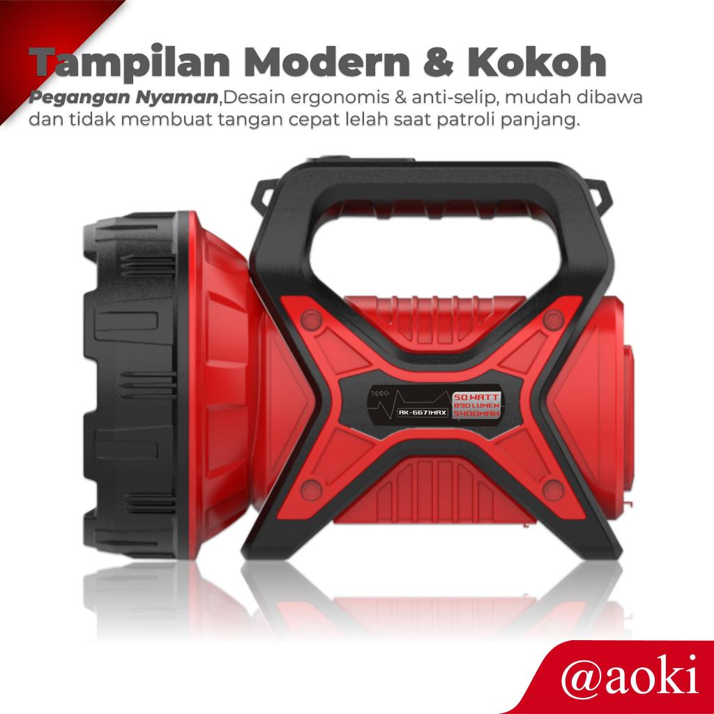 AOKI Senter Patrol AK-6671MAX | Baterai 18650 Bisa Diganti | Lampu LED Rechargeable 5400mAh | Indikator Daya | 5 Mode Ca