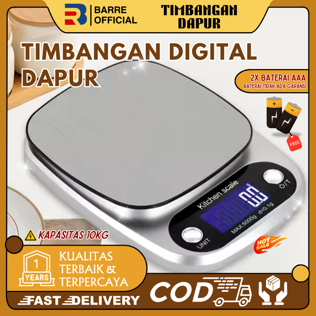 BARRE Premium Kitchen High Quality Timbangan Dapur Digital Kitchen Scale 10kg Kue Kopi Emas