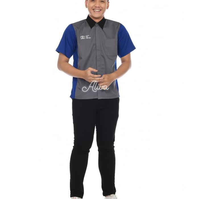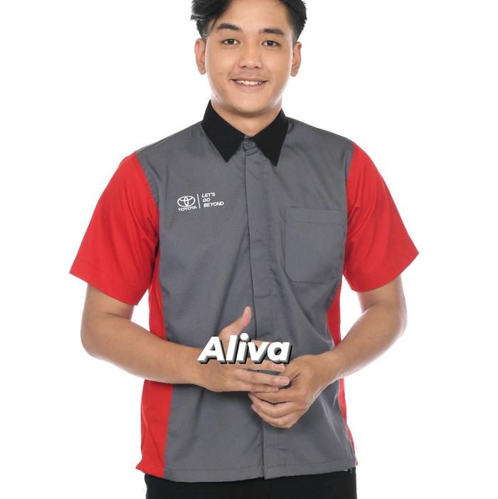 KEMEJA KERJA PRIA SERAGAM KARYAWAN SERAGAM KANTOR MARKETING TOYOTA BAJU BORDIR PENDEK KATUN SAFETY WEARPACK - PRIA MERAH