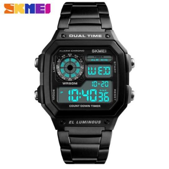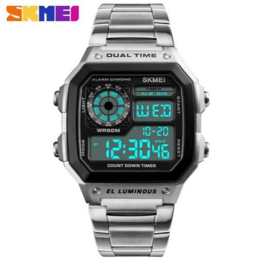 Jam Tangan Pria Wanita Digital Tali Stainless Anti Air SKMEI 1335