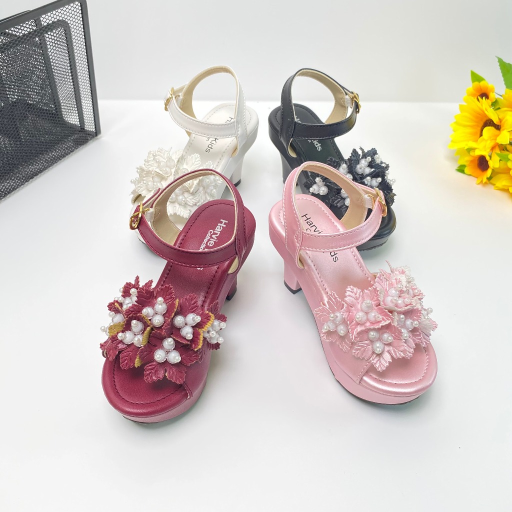 Sepatu Sandal Pesta Anak Perempuan Hak Heels 5cm Tali Motif Mutiara | Harvie Kids HR044