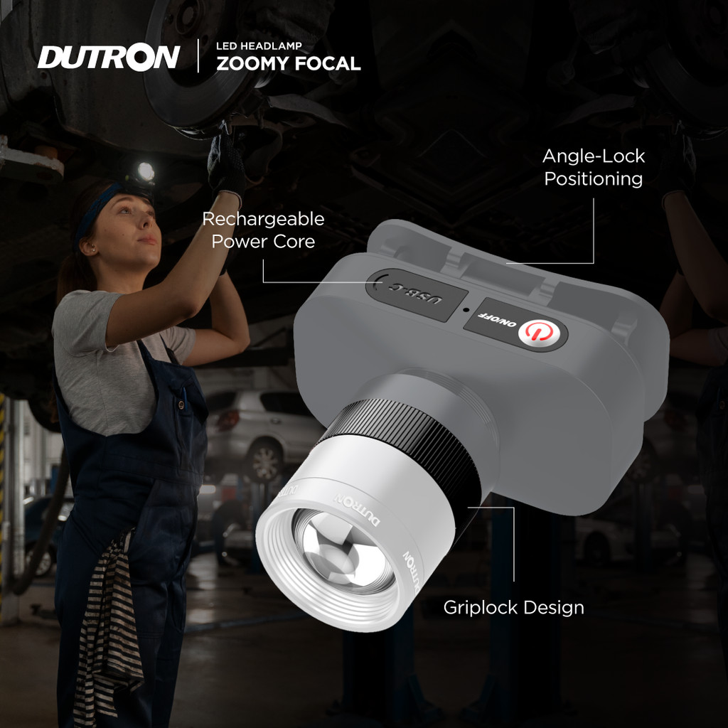 DUTRON Senter Kepala LED Zoomy Focal Rechargeable Water Resistant 20 Watt dengan Fitur ZOOM IN Dan ZOOM OUT
