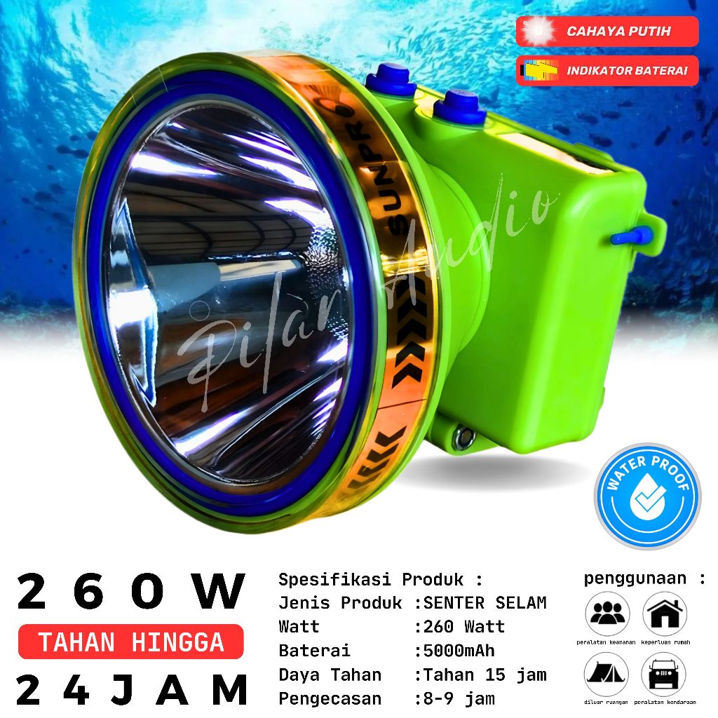Senter Kepala Selam 260W Sunpro S-8961 | Headlamp Diving Cahaya Putih Dan Kuning Super Terang Outdoor Headlight Tahan Hi