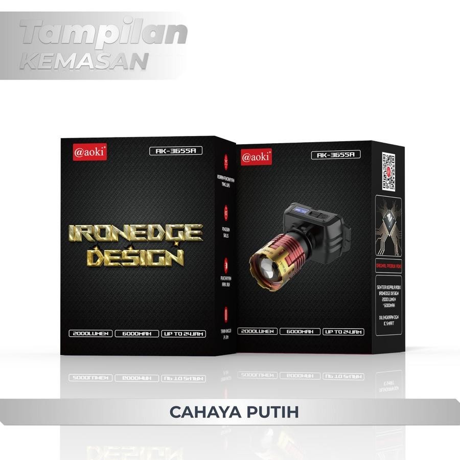 SENTER KEPALA ZOOM LED 90W PRO AOKI AK-3655A - BATERAI 6.000mAh - PREMIUM - 90W PRO PUTIH