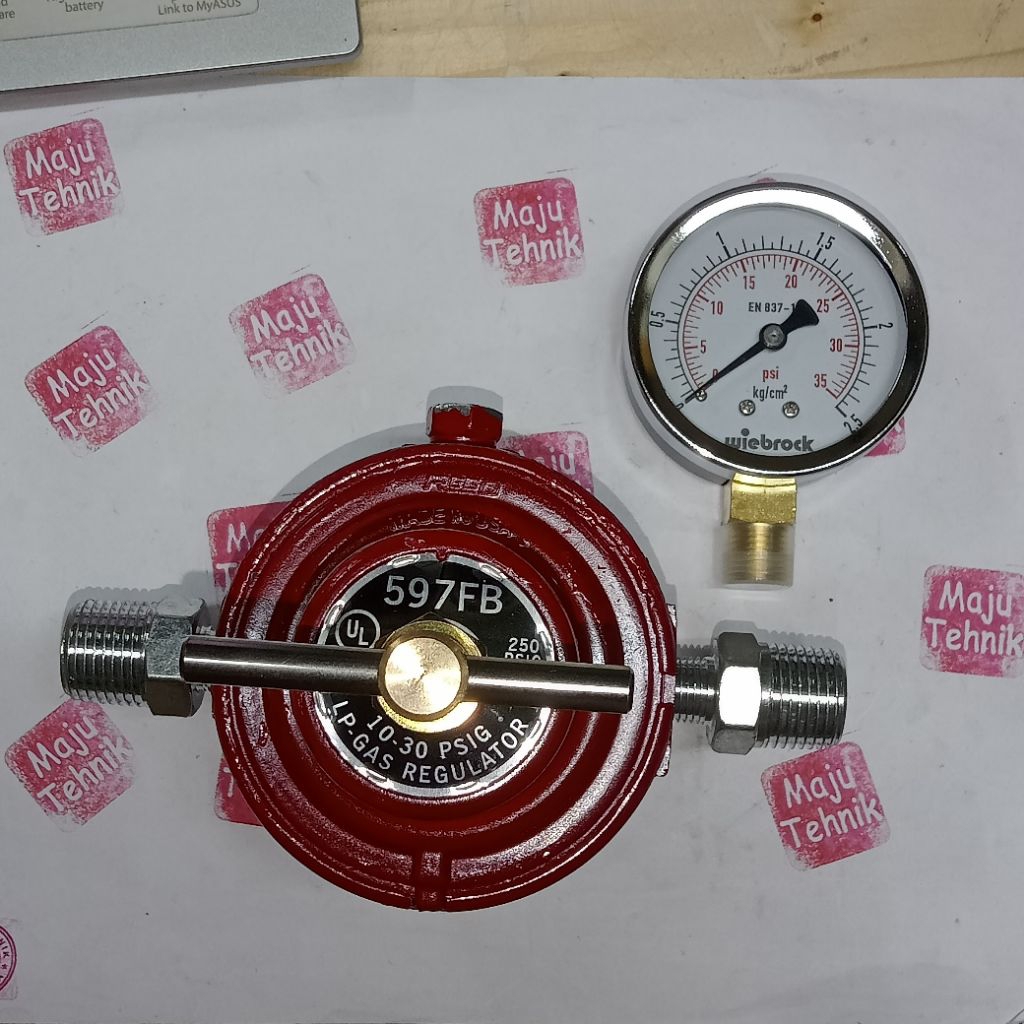 Regulator RE 597FB + Pressure Gauge 2,5kg + Nepel 1/2"×1/4"