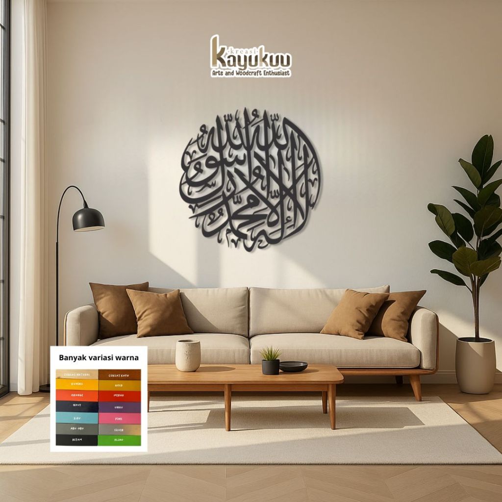 Kreasikayukuu Kaligrafi Tauhid Diameter 30/40/50cm Hiasan Dinding Mushola Timbul Plywood 5mm